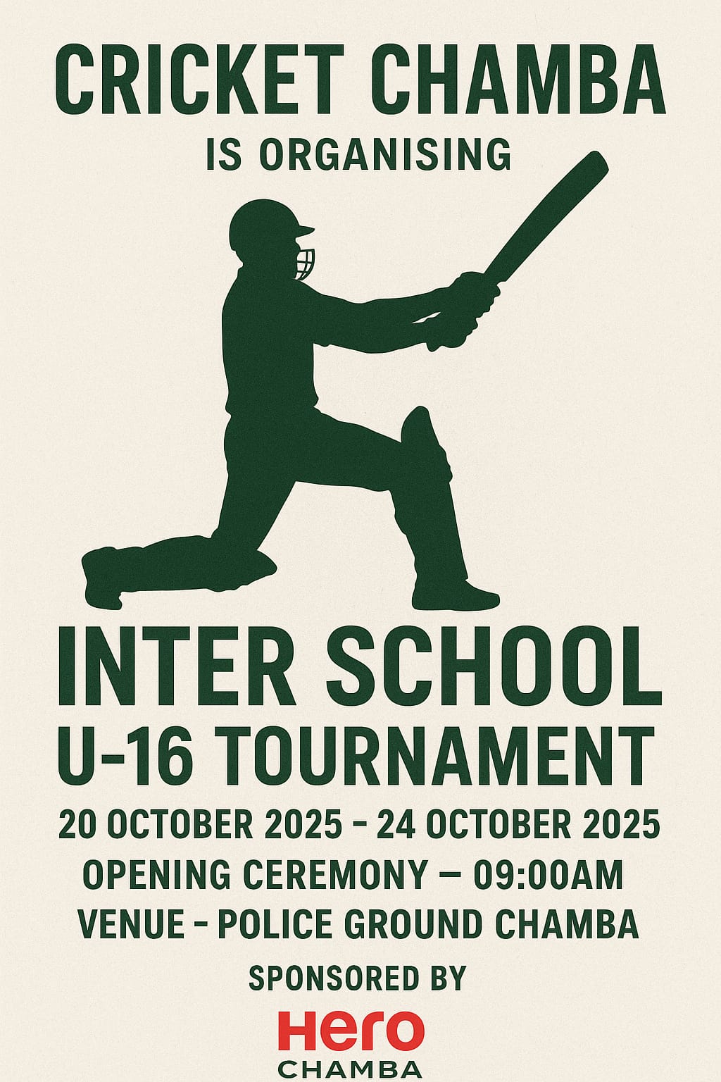 क्रिकेट चम्बा की ओर से आयोजित होगी प्रतियोगिता, तीन दिन तक चलेगी, 20 से 24 अक्टूबर तक क्रीड़ा पर्व का किया जा रहा आयोजन