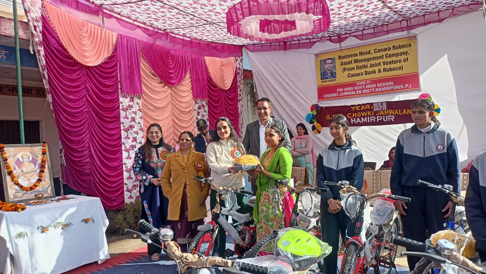 हमीरपुर , 28 जनवरी [ बिंदिया ठाकुर ] ! सुजानपुर विधानसभा क्षेत्र के चौकी क्षेत्र में आज एक प्रेरणादायक और यादगार कार्यक्रम का आयोजन किया गया। समाजसेवी अरुण सारीन द्वारा पीएम श्री गवर्नमेंट हाई स्कूल चौकी जमवालन के विद्यार्थियों को 68 साइकिलें डोनेट की गईं, जिससे बच्चों के चेहरों पर खुशी साफ नजर आई।