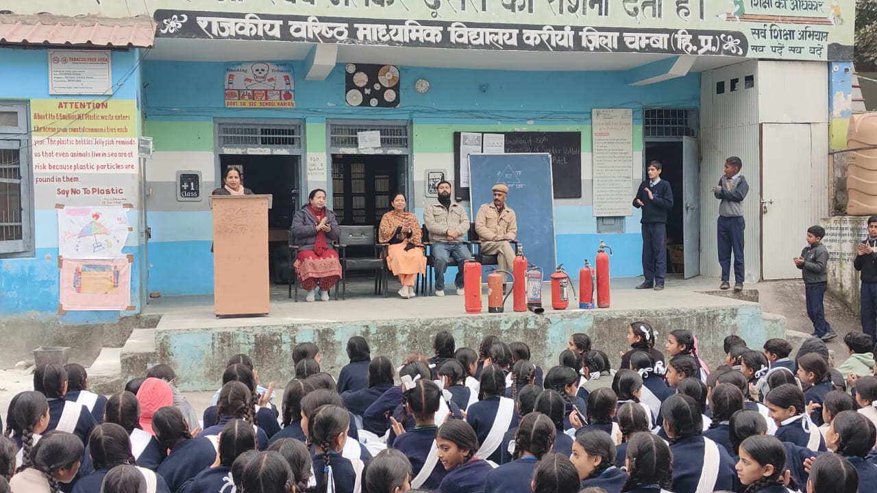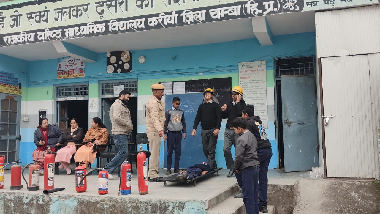 चम्बा , 29 दिसंबर [ शिवानी ] ! राजकीय वरिष्ठ माध्यमिक विद्यालय करियां में अग्निशमन विभाग, चंबा द्वारा मॉक ड्रिल एवं सुरक्षा जागरूकता कार्यक्रम का आयोजन किया गया। कार्यक्रम का उद्देश्य विद्यार्थियों को आगजनी जैसी आपातकालीन परिस्थितियों में सतर्कता एवं सुरक्षा उपायों की व्यवहारिक जानकारी देना रहा।