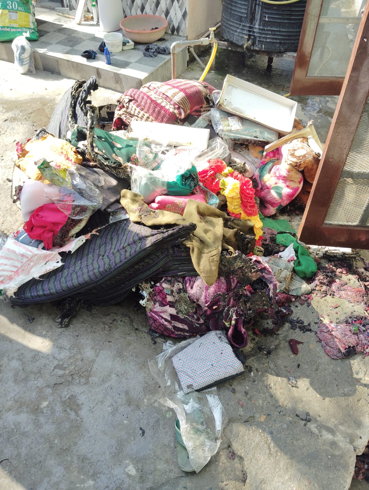 आग लगने से कूलर, वाशिंग मशीन, कपड़े, बेड बॉक्स, रोजमर्रा की उपयोगी चीजें, गद्दे, कंबल, रजाइयां, मोबाइल फोन, एलईडी टीवी, सीसीटीवी कैमरा ऑपरेटिंग बॉक्स, 2000 वाट का हीटर तथा शॉर्ट सर्किट से जली हुई बिजली की वायरें पूरी तरह राख हो गईं। राकेश कुमार के अनुसार इस दुर्घटना में किसी की लापरवाही नहीं है और न ही उन्हें किसी पर कोई शक है।