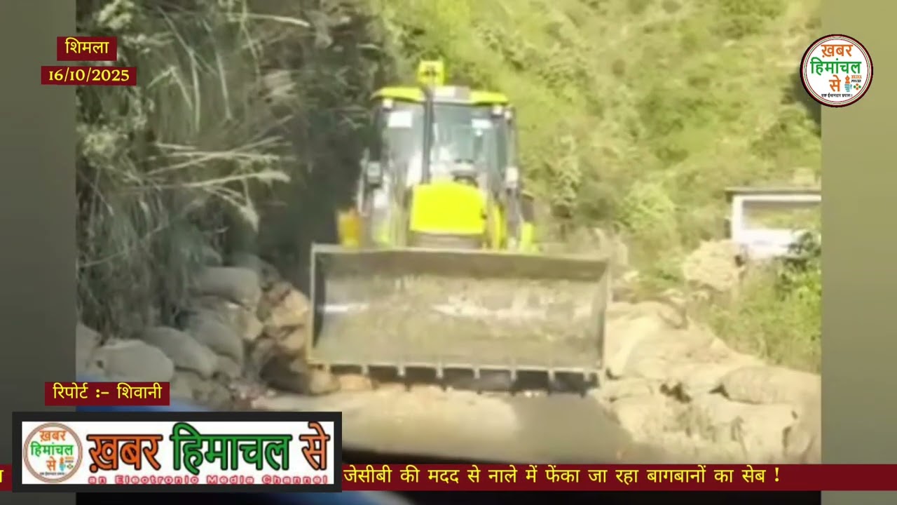 शिमला ! एचपीपीसीबी  की कार्यप्रणाली पर उठे सवाल,जेसीबी की मदद से नाले में फेंका जा रहा बागबानों का सेब !