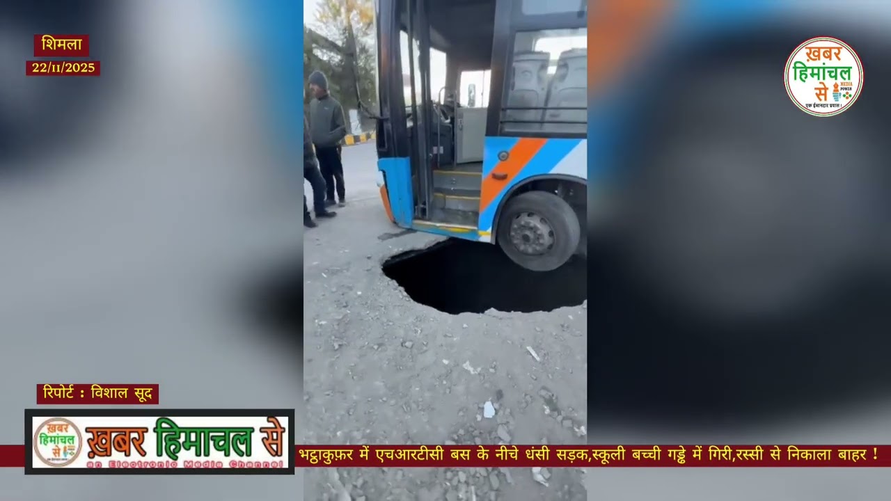 • शिमला  ! भट्ठाकुफ़र एचआरटीसी बस के नीचे धंसी सड़क, स्कूली बच्ची गड्ढे में गिरी, रस्सी से निकाला गया !