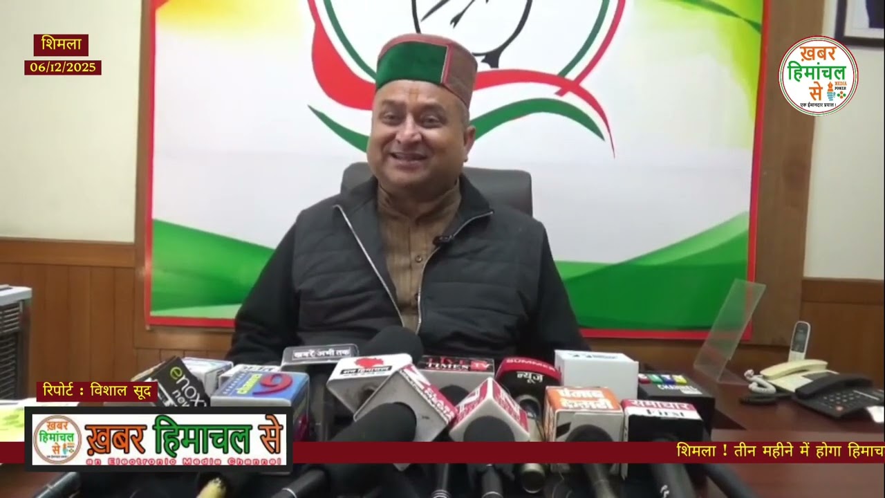 • शिमला ! तीन महीने में होगा हिमाचल कांग्रेस कार्यकारिणी का गठन - विनय कुमार !