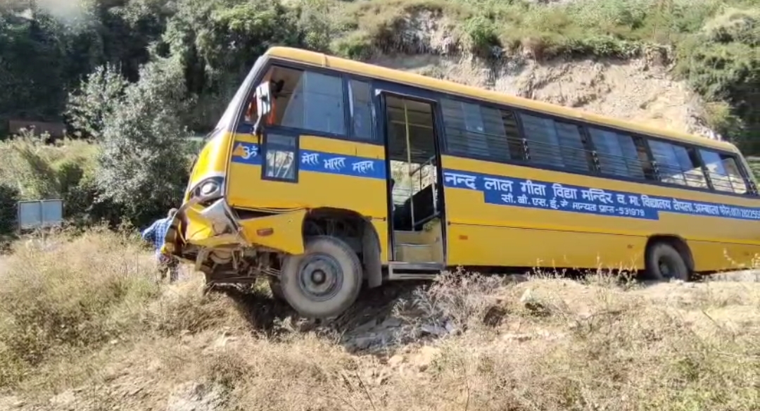 सोलन ! सोलन में बड़ा हादसा टला अम्बाला के निजि  स्कूल की बस खाई में गिरने से बाल बाल बची !