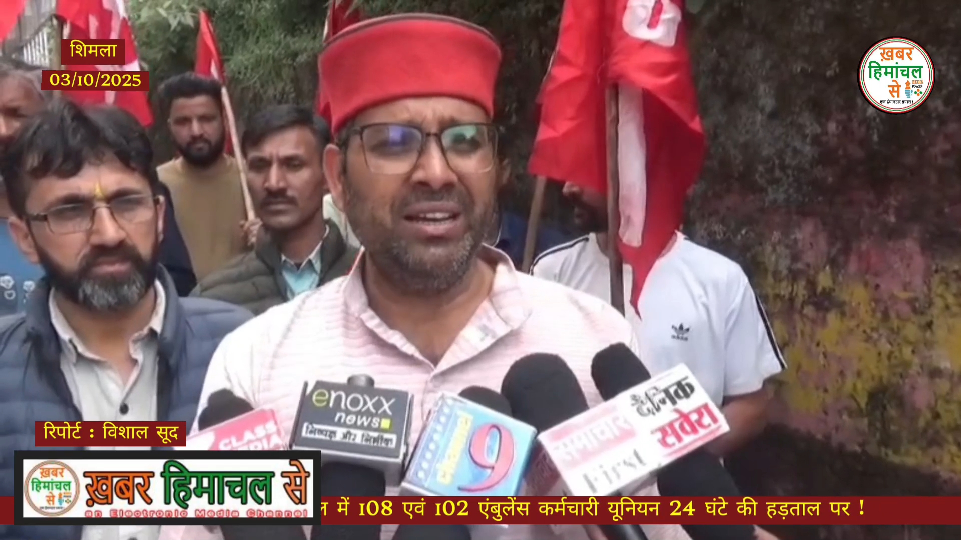 शिमला ! हिमाचल में 108 एवं 102 एंबुलेंस कर्मचारी यूनियन 24 घंटे की हड़ताल पर !