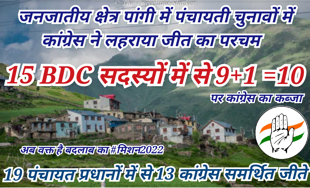 चम्बा/पांगी ! पांगी में पंचायती राज चुनावों में कांग्रेस ने लहराया जीत का परचम !