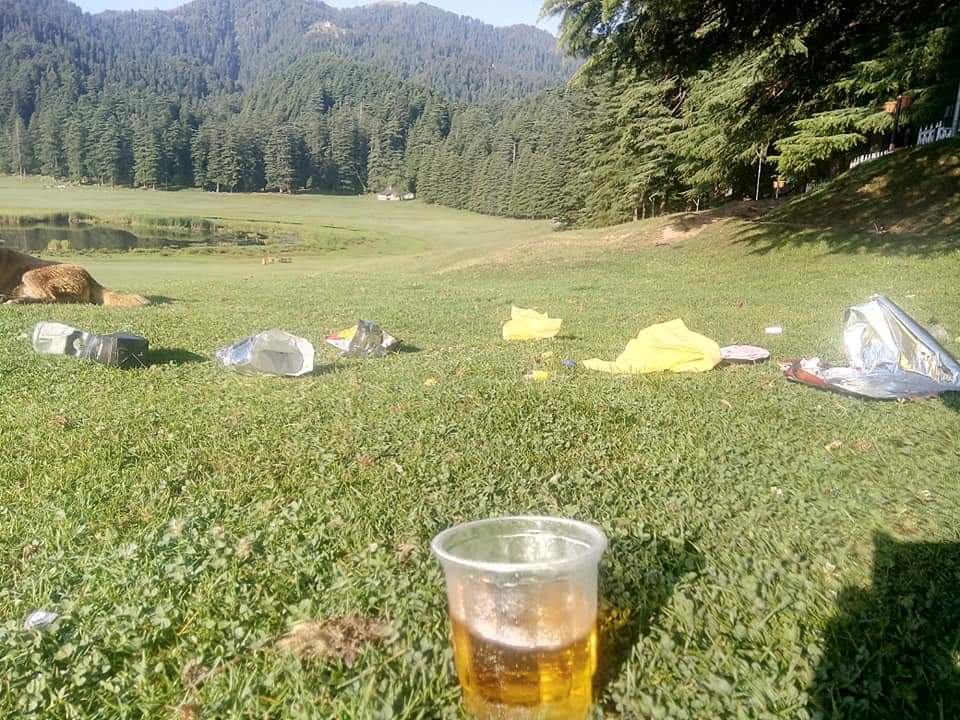 चम्बा/खजियार ! प्रतिबंध में छूट के बाद पर्यटन स्थल खजियार में पसरी गंदगी।