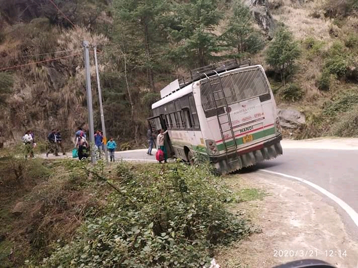 करसोग के बखरोट में टायर फटने से स्किट हुई HRTC बस, टला बड़ा हादसा !