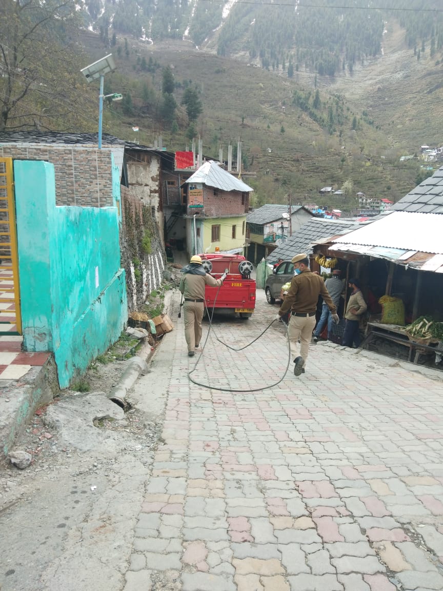 भरमौर कस्बे को किया जा रहा सैनिटाइज।