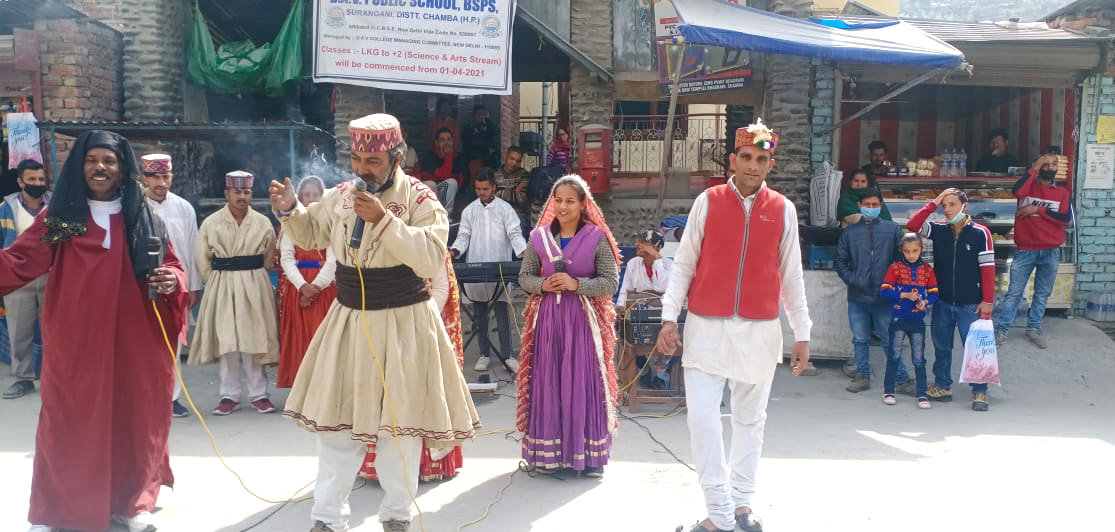 चम्बा ! फोक मीडिया के कलाकारों ने गिनाई सरकार की उपलब्धियां।
