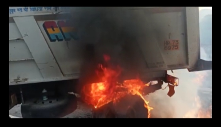 चम्बा ! कूड़े में भड़की आग की बजह से सड़क किनारे खड़े टिप्पर में लगी आग !