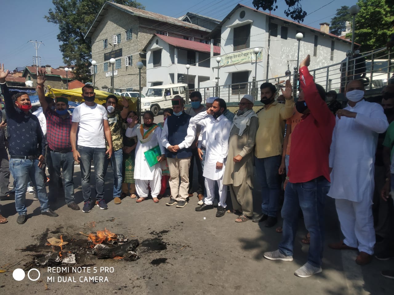 चम्बा ! कांग्रेस ने चंबा में जलाया योगी आदित्यनाथ का पुतला।