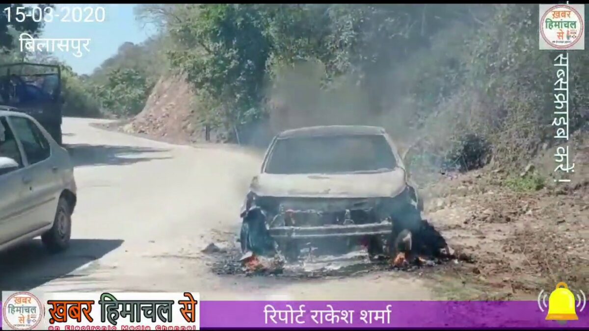 बिलासपुर । राष्ट्रीय मार्ग चंडीगढ़ मनाली पर एक चलती गाड़ी में लगी आग ।