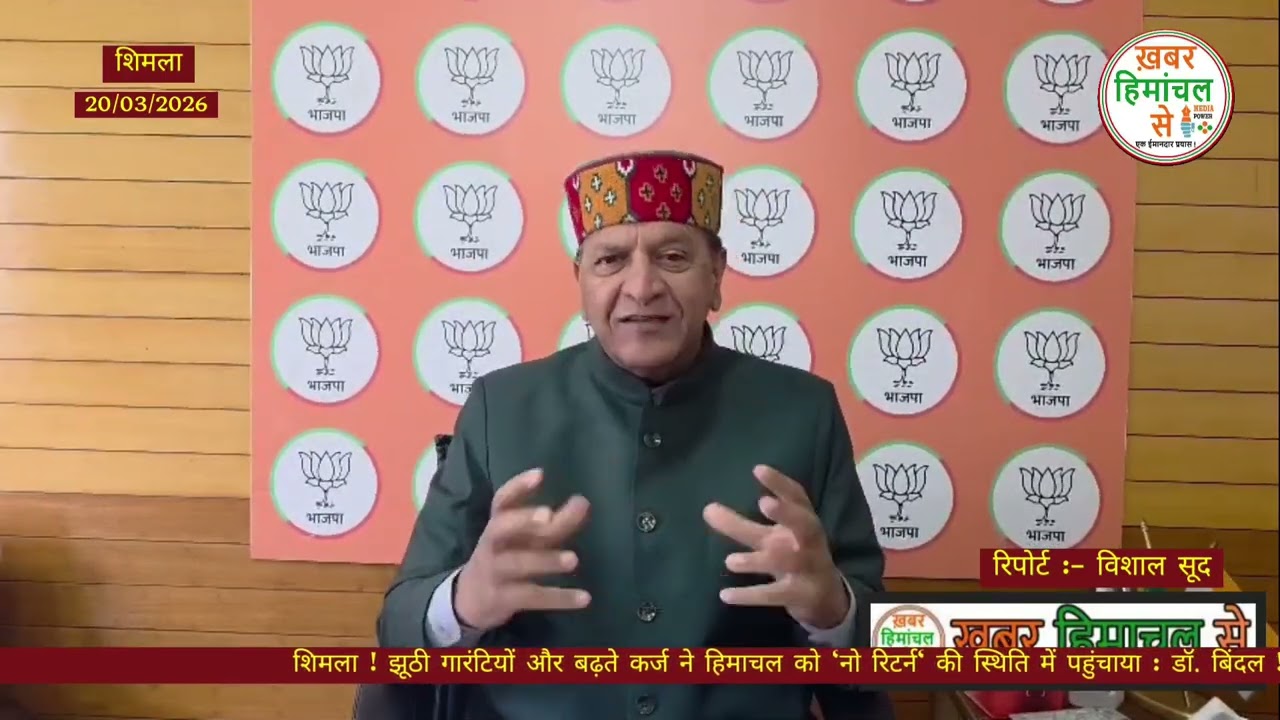 शिमला ! झूठी गारंटियों और बढ़ते कर्ज ने हिमाचल को ‘नो रिटर्न’ की स्थिति में पहुंचाया : डॉ. बिंदल !