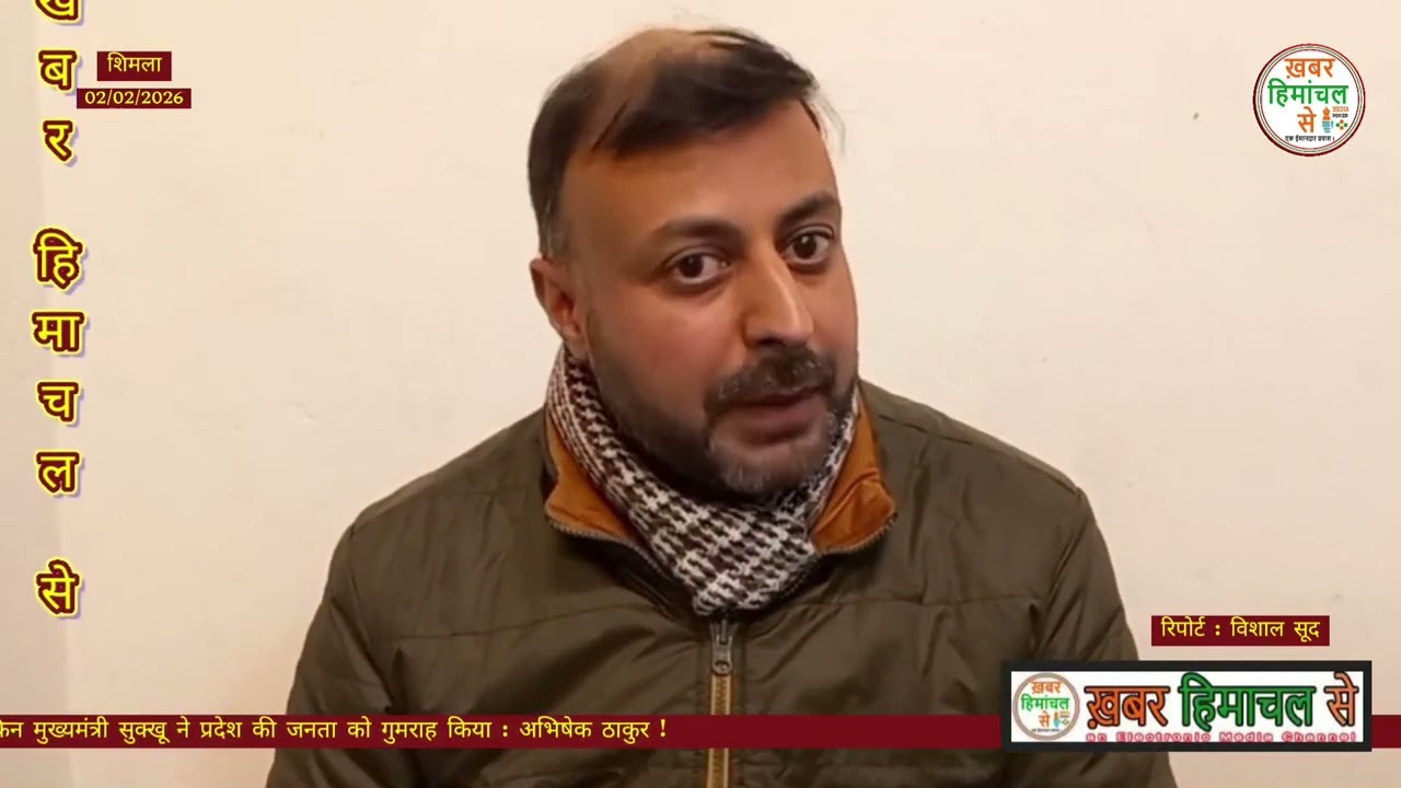 शिमला ! केंद्र ने बढ़ाया हिमाचल का हक, लेकिन मुख्यमंत्री सुक्खू ने प्रदेश की जनता को गुमराह किया : अभिषेक ठाकुर !