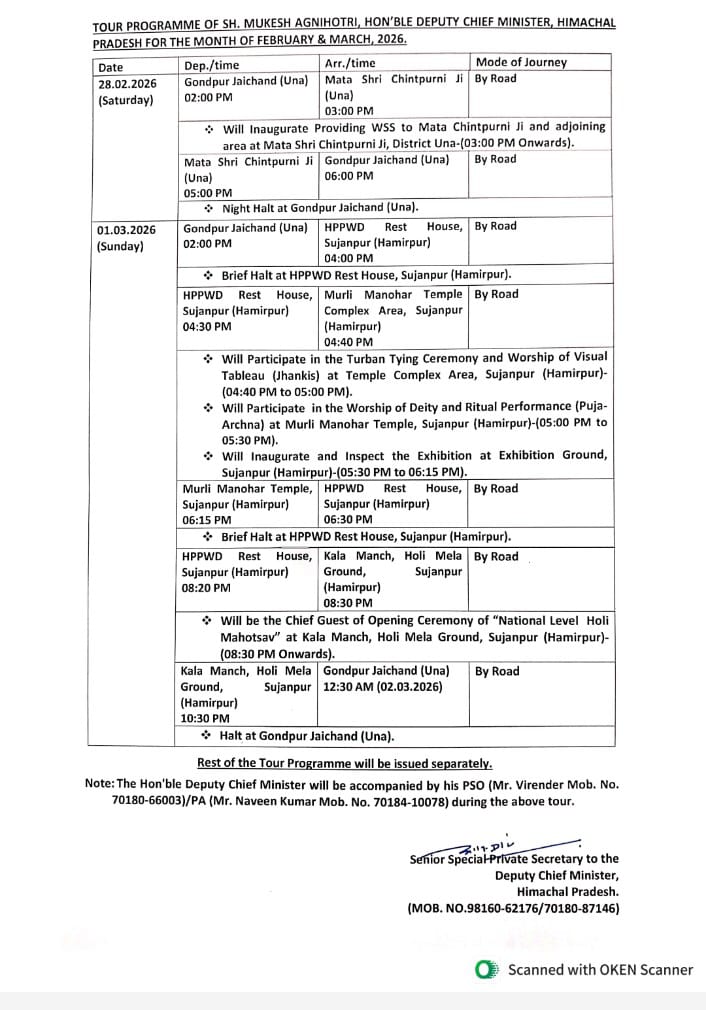 • शिमला ! राष्ट्रव्यापी सर्वाइकल कैंसर टीकाकरण अभियान मातृशक्ति की सुरक्षा हेतु ऐतिहासिक कदम: जयराम ठाकुर !