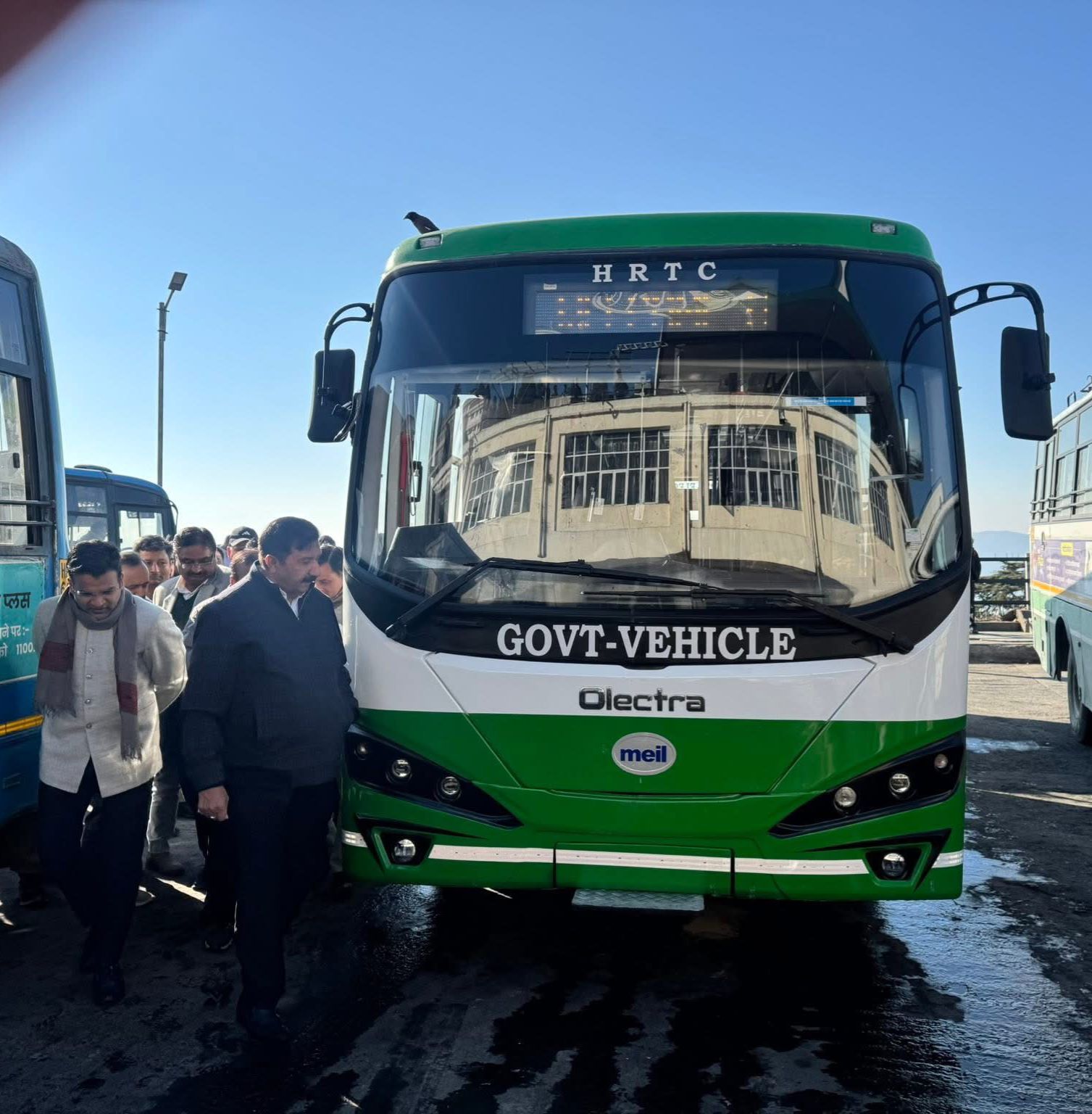 शिमला , 14 जनवरी [ विशाल सूद ] ! एच.आर.टी.सी. के बेड़े में शामिल होने जा रहीं नई 297 ईलेक्ट्रिक बसों के हिमाचल आने से पहले निगम प्रबंधन ट्रायल के लिए आई एक इलैक्ट्रिक बस (प्रोटोटाईप) का निरीक्षण बुधवार को उपमुख्यमंत्री मुकेश अग्निहोत्री ने किया।