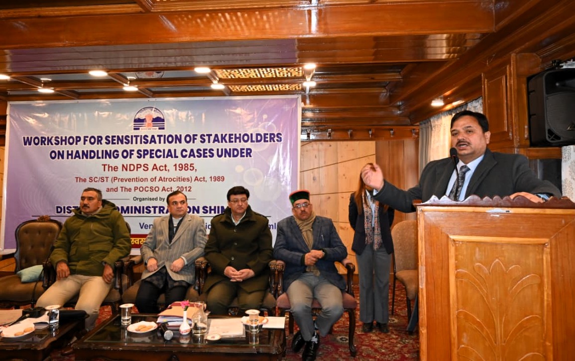 शिमला , 18 जनवरी [ विशाल सूद ] ! जिला प्रशासन शिमला द्वारा एनडीपीएस एक्ट 1985, एससी एसटी एक्ट 1989 और पॉक्सो एक्ट 2012 को लेकर एक दिवसीय विशेष कार्यशाला आज होटल होलीडे होम में आयोजित की गई।पहली बार जिला में इस तरह की समावेशी कार्यशाला का आयोजन किया गया।