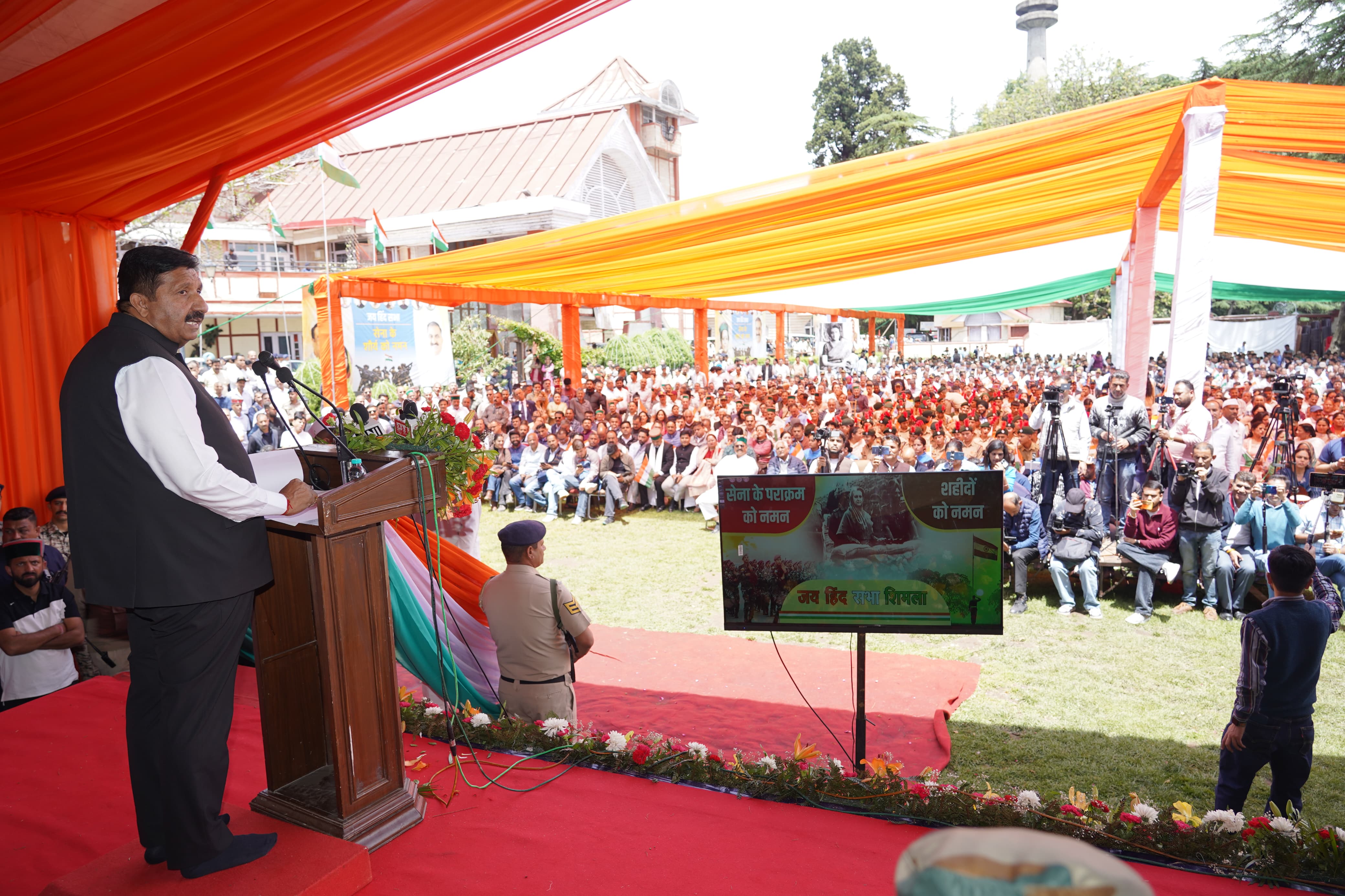 शिमला , 30 मई [ विशाल सूद ] ! उप-मुख्यमंत्री मुकेश अग्निहोत्री ने आज शिमला में जय हिन्द सभा को संबोधित करते हुए देश की रक्षा में सर्वोच्च बलिदान देने वाले शहीद सैनिकों को श्रद्धांजलि अर्पित की तथा उनके परिजनों और पूर्व सैनिकों को नमन किया। उन्होंने कहा कि भारतीय सेना के शौर्य और पराक्रम की गौरवगाथा हमारे इतिहास का स्वर्णिम अध्याय है, जिसे कभी भुलाया नहीं जा सकता।