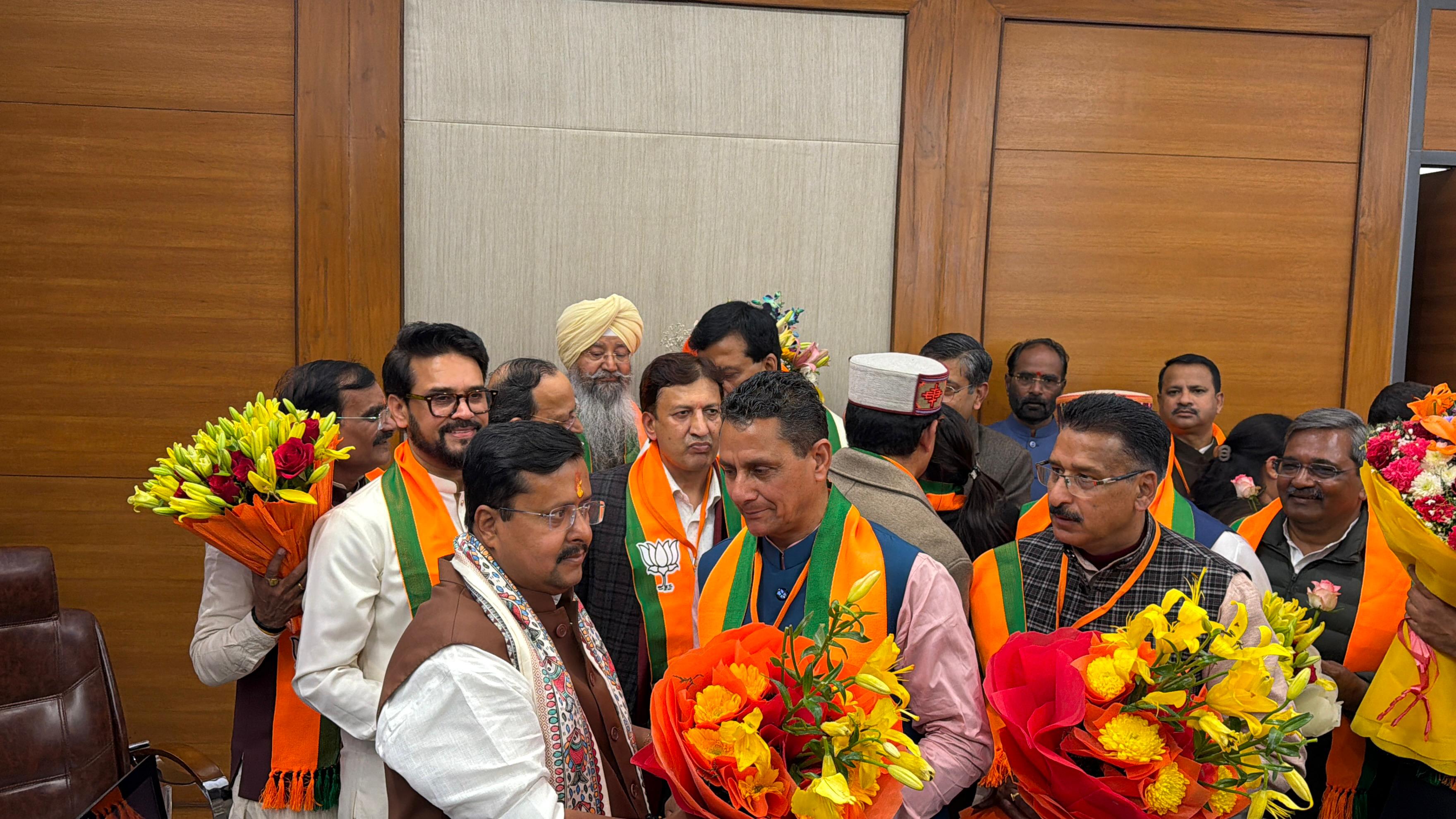 शिमला , 20 जनवरी [ विशाल सूद ] : पूर्व केंद्रीय मंत्री व हमीरपुर लोकसभा क्षेत्र से सांसद श्री अनुराग सिंह ठाकुर ने नितिन नबीन जी के भाजपा के राष्ट्रीय अध्यक्ष पद पर निर्वाचन को लेकर हर्ष व्यक्त करते हुए कहा कि यह भाजपा और भारत दोनों के लिए गर्व का विषय है। श्री अनुराग सिंह ठाकुर ने भाजपा के राष्ट्रीय कार्यालय में नितिन नबीन जी के पदभार ग्रहण करने पर भेंट कर उन्हें अपनी शुभकामनाएँ प्रेषित कीं। साथ ही श्री अनुराग सिंह ठाकुर ने भाजपा के निवर्तमान राष्ट्रीय अध्यक्ष श्री जगत प्रकाश नड्डा जी के कार्यकाल को अतिसफल बताते हुए उन्हें अपनी शुभकामनाएं प्रेषित कीं।