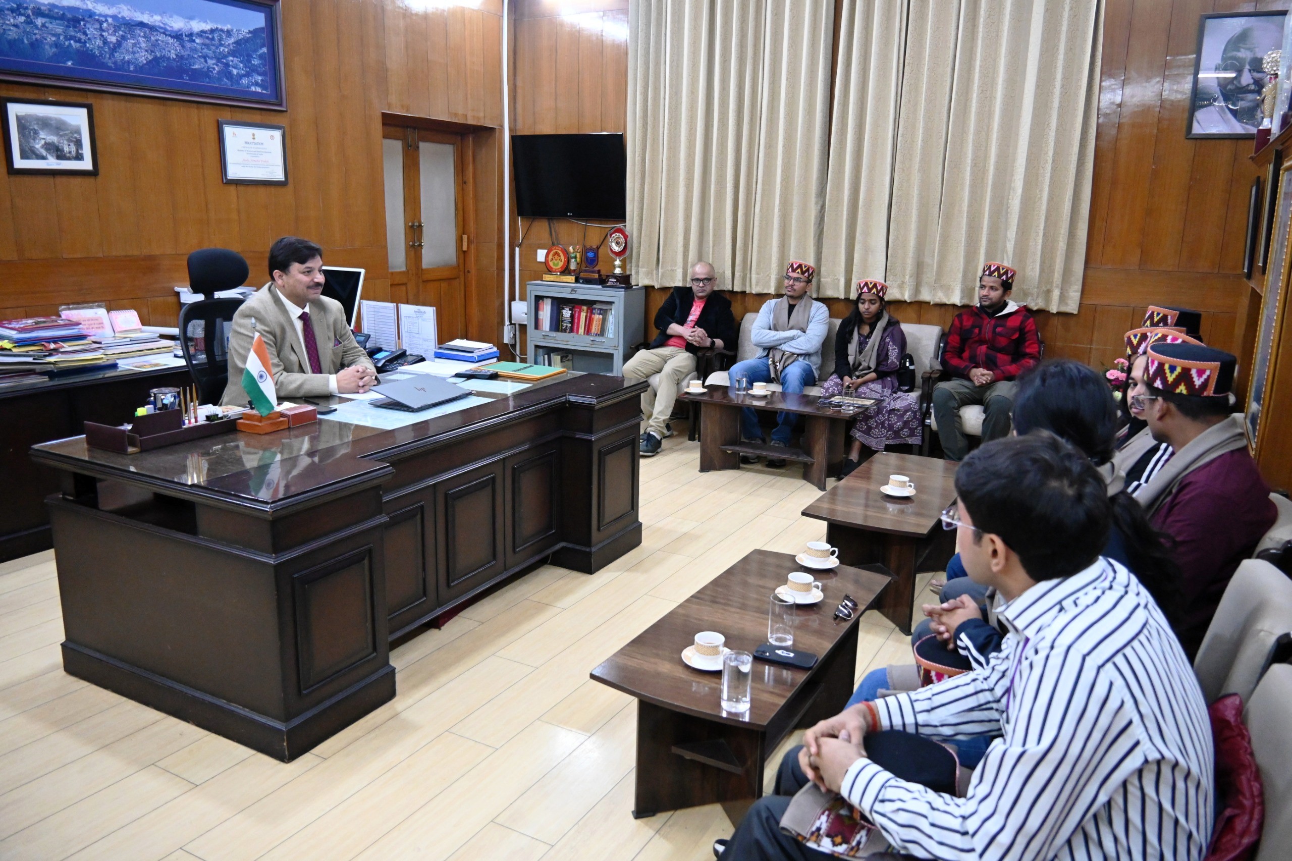 शिमला , 19 मार्च [ विशाल सूद ] ! उपायुक्त शिमला अनुपम कश्यप ने आज यहां 09 प्रोबेशनर आईएएस अधिकारियों के दल से मुलाक़ात की। उपायुक्त ने सभी अधिकारियों को शॉल और टोपी से सम्मानित किया और उनके उज्जवल भविष्य की कामना की। इस दौरान प्रोबेशनर आईएएस अधिकारियों ने भी उपायुक्त को स्मृति चिन्ह भेंट किया। उल्लेखनीय है कि लाल बहादुर शास्त्री राष्ट्रीय प्रशासन अकादमी, मसूरी से 12 प्रोबेशनर आईएएस अधिकारियों का यह दल 17 मार्च से 22 मार्च 2026 तक शिमला के विंटर स्टडी टूर पर आया हुआ है और इस दौरान दल शिमला के विभिन्न संस्थानों का दौरा कर रहा है, जिनमें भारतीय उन्नत अध्ययन संस्थान, केंद्रीय आलू अनुसंधान संस्थान, इंदिरा गांधी मेडिकल कॉलेज एवं हॉस्पिटल, पीएम श्री केंद्रीय विद्यालय जाखू आदि संस्थान शामिल हैं। उपायुक्त ने प्रोबेशनर आईएएस अधिकारियों को मशोबरा स्थित बाल देखभाल संस्थान का दौरा करने और प्रदेश सरकार की महत्वाकांक्षी मुख्यमंत्री सुखाश्रय योजना की जानकारी हासिल करने को कहा। उन्होंने कहा कि इस योजना के तहत प्रदेश के सभी निराश्रित और बेसहारा बच्चों को प्रदेश सरकार ने 'चिल्ड्रन ऑफ़ दी स्टेट' का दर्जा दिया है और उनकी पढाई-लिखाई, रहने, खाने-पीने, घूमने आदि का सारा खर्च प्रदेश सरकार वहन कर रही है। इसके अतिरिक्त, उपायुक्त ने प्रोबेशनर अधिकारियों को बताया कि 21 मार्च 2026 को मुख्यमंत्री ठाकुर सुखविंदर सिंह सुक्खू वित्तीय वर्ष 2026-27 का बजट प्रस्तुत करेंगे। उन्होंने प्रोबेशनर अधिकारियों को बजट सत्र में भाग लेने का सुझाव दिया। अनुपम कश्यप ने कहा कि अपने विंटर स्टडी टूर पर शिमला आए सभी प्रोबेशनर अधिकारी प्रदेश सरकार की कल्याणकारी योजनाओं को किस धरातल पर उतारा जाता है, इस बात की जानकारी हासिल करेंगे। उन्होंने कहा कि यह प्रत्यक्ष अनुभव उनमें समाज के कमजोर वर्ग के प्रति सहानुभूति जगाएगा, जिनकी आगे चलकर उन्हें सेवा करनी है। इस दौरान तहसील कल्याण अधिकारी सुरेंदर बिमटा भी उपस्थित रहे जिन्हे जिला प्रशासन द्वारा प्रोबेशनर आईएएस अधिकारियों के दल के साथ नोडल अधिकारी के रूप में तैनात किया गया है।