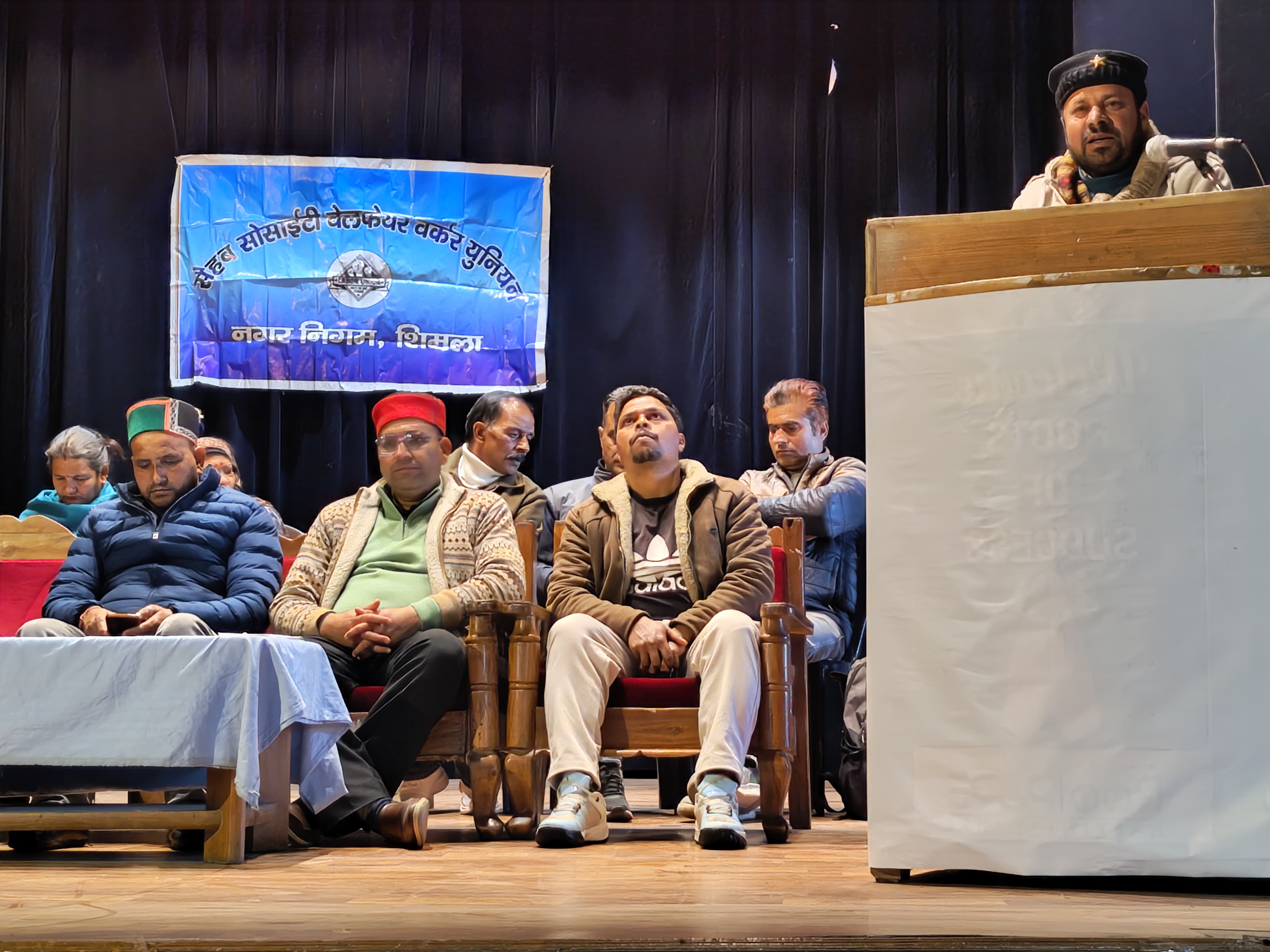 शिमला , 06 फरवरी [ विशाल सूद ] ! सैहब सोसाइटी वर्करज़ यूनियन सम्बन्धित सीटू बैनर तले सैहब सोसाइटी गार्बेज कलेक्टरों, सुपरवाइजरों, रोड़ स्वीपिंग स्टाफ व अन्य सैंकड़ों कर्मियों ने अपनी मांगों को लेकर कालीबाड़ी हॉल शिमला में एक आम सभा आयोजित करके 12 फरवरी को हड़ताल करने का निर्णय लिया है। मजदूरों ने नगर निगम प्रशासन की मजदूर विरोधी नीतियों के खिलाफ निर्णायक आंदोलन का ऐलान किया है। यूनियन ने निर्णय लिया है कि जब तक मजदूरों की मांगों का हल नहीं होगा तब तक आंदोलन जारी रहेगा। आम सभा में सीटू प्रदेशाध्यक्ष विजेंद्र मेहरा, जिला सचिव विवेक कश्यप, अध्यक्ष जसवंत सिंह, महासचिव ओमप्रकाश, रोड़ स्वीपिंग कर्मचारी यूनियन अध्यक्ष प्रमोद कुमार, सैहब यूनियन सलाहकार पाला राम, सचिव शिव राम, दलविंद्र सुनील, योगेश, भरत, पवन, नरेंद्र, रूपा, पूनम, शारदा, देवी सिंह, सूरत राम, नरेंद्र, राकेश, राहुल, बूटा राम, विक्रम, दिगम्बर, मनोज, अजित, चंदू लाल, दिनेश, धर्म चंद,नीरज, ललित, मदन, इंद्र, प्रेम, राजीव, खूब राम, अरविंद सहित सैकड़ों सैहब कर्मी शामिल रहे।