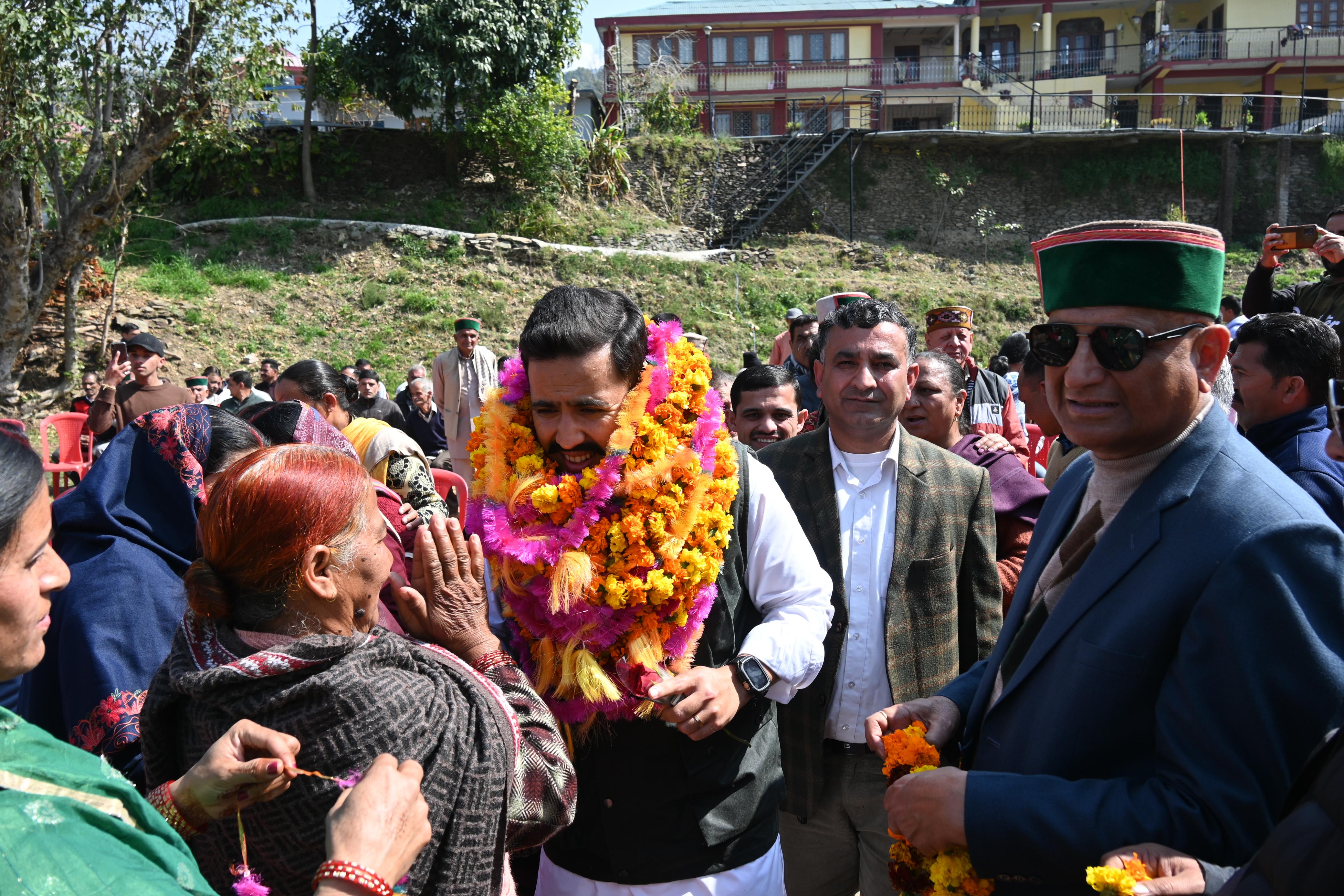 शिमला 22 फरवरी [ विशाल सूद ] ! रामपुरी क्योंथल पंचायत के धनुल गांव में *मंत्री आपके द्वार* कार्यक्रम का आयोजन रविवार को किया गया।इस मौके पर लोक निर्माण एवं शहरी विकास मंत्री विक्रमादित्य सिंह ने बतौर मुख्यातिथि शिरकत की। मंत्री ने जनसभा को संबोधित करते हुए कहा कि विकास कार्य निरन्तर प्रक्रिया है जिनको निर्धारित समय में पूर्ण करवाने के लिए प्रयास किया जाता है। इस क्षेत्र में आत्मनिर्भर ग्रामीण है। विकास कार्य सामूहिक सहयोग से संभव है। जलोग क्षेत्र में दूध एकत्रीकरण केंद्र स्थापित करने के लिए कार्य किया जा रहा है। इससे करीब 10 पंचायतों को फायदा मिलेगा। उन्होंने कहा कि रामपुरी क्योंथल क्षेत्र के आसपास की पंचायतों के लिए भी भविष्य में दूध एकत्रीकरण केंद्र स्थापित करने की दिशा में कार्य किया जाएगा। उन्होंने कहा कि हिमाचल प्रदेश की आर्थिकी स्थिति भविष्य में बेहतर होगी। वर्तमान सरकार इस दिशा में प्रभावी कदम उठा रही है। उन्होंने कहा कि घोषणाएं आवश्यकताओं के अनुसार होनी चाहिए। उन्होंने बताया कि जाठिया देवी से रामपुरी सड़क की मेटलिंग के लिए 70 लाख रुपए खर्च किए जा चुके है। इसके अतिरिक्त, कूड़ा संयत्र भरियाल में बायोगैस बनाने के प्लांट को स्वीकृति मिल चुकी है। इसके बाद कूड़े का इस्तेमाल सीमेंट निर्माण के लिए भी किया जाएगा। उन्होंने कहा कि मथोली गांव के लिए सड़क भविष्य में बनाई जाएगी। उन्होंने कहा कि फायल से हेयूं सड़क लोक निर्माण के आधीन डाली जाएगी। फिलहाल एंबुलेंस रोड़ में स्थानांतरित करके इसका कार्य पूरा किया जाएगा। मंत्री आपके द्वार कार्यक्रम के दौरान स्थानीय लोगों ने विभिन्न जनसमस्याएं रखीं। इन सभी जनसमस्याओं को प्राथमिकता के आधार पर पूर्ण करने का आश्वासन दिया। उन्होंने स्थानीय पंचायत के लिए 03 लाख रुपए देने की घोषणा की। पूर्व ब्लॉक कांग्रेस समिति अध्यक्ष चंद्रशेखर, पूर्व प्रदेश सचिव जितेंद्र ठाकुर, पार्षद मोनिका भारद्वाज, खेमराज, ईश्वर शर्मा, रमेश शर्मा, पवन, सुरेश शर्मा, महिला कांग्रेस अध्यक्ष बिमला, इंद्र, सरोज, राजेश शर्मा, रोशन, रामलाल, वेद, लाल चंद वर्मा, भुवनेश्वर, खेम वर्मा, प्रेम शर्मा, नरेश ठाकुर, दिनेश मेहता, विकास, मदन शास्त्री, मधु शर्मा, संजीत, मीना शर्मा, राहुल, राजेंद्र, देवेंद्र ठाकुर, जगदीश ठाकुर, अनिल तंवर, आला अधिकारी और स्थानीय जनता मौजूद रही।