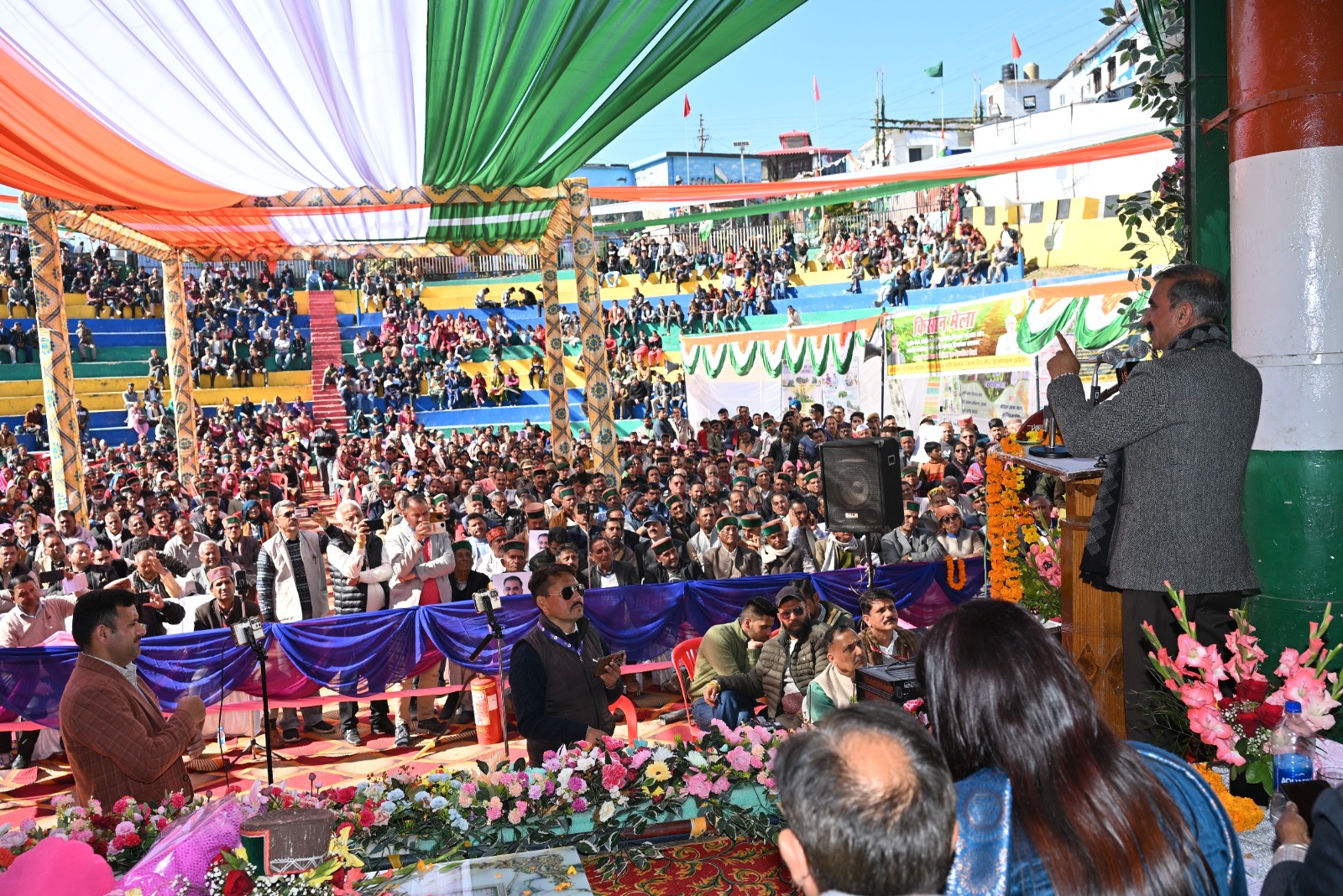 सिरमौर , 14 फरवरी [ विशाल सूद ] ! जिला के पच्छाद विधानसभा क्षेत्र के सराहां में एक विशाल जनसभा को संबोधित करते हुए मुख्यमंत्री ठाकुर सुखविन्द्र सिंह सुक्खू ने कहा कि राज्य सरकार ग्रामीण अर्थव्यवस्था को सुदृढ़ करने के लिए निरंतर प्रयास कर रही है। उन्होंने कहा कि राज्य सरकार दूध पर समर्थन मूल्य प्रदान कर रही है और अदरक पर भी न्यूनतम समर्थन मूल्य प्रदान किया जाएगा। एक वर्ष के भीतर सराहां अस्पताल में विशेषज्ञ चिकित्सक की तैनाती की जाएगी साथ ही अल्ट्रासाउंड मशीन भी स्थापित होगी। उन्होंने सराहां में सीबीएसई स्कूल खोलने और सराहां-चंडीगढ़ सड़क मार्ग को डबललेन करने की भी घोषणा की। उन्होंने कांग्रेस नेता दयाल प्यारी और पूर्व विधानसभा अध्यक्ष गंगू राम मुसाफिर की मांगों को पूरा करने का आश्वासन दिया। प्रदेश के प्रथम मुख्यमंत्री डॉ. वाई एस परमार को याद करते हुए मुख्यमंत्री ने कहा कि उन्होंने हिमाचल प्रदेश के लोगों के हितों की रक्षा के लिए धारा 118 का प्रावधान किया और वर्तमान राज्य सरकार भी उन्हीं के पद चिन्हों पर चल रही है। उन्होंने कहा कि डॉ. परमार के समय से प्रदेश को राजस्व घाटा अनुदान मिलता रहा, लेकिन 16वें वित्तायोग ने 77 साल पुरानी व्यवस्था को खत्म कर दिया। राजस्व घाटा अनुदान सरकार का नहीं, प्रदेश के लोगों का अधिकार है। उन्होंने कहा कि वर्तमान राज्य सरकार प्रदेश के लोगों के हितों की लड़ाई लड़ रही है। ठाकुर सुखविन्द्र सिंह सुक्खू ने कहा कि भाजपा नेताओं की मांग पर सर्वदलीय बैठक का स्थान बदला गया लेकिन हिमाचल के हितों के लिए भाजपा खड़ी नहीं हुई, जबकि अन्य सभी दलों ने राजस्व घाटा अनुदान पर राज्य सरकार को समर्थन दिया। मुख्यमंत्री ने कहा कि बैठक में जब उन्होंने भाजपा नेताओं से पूछा कि क्या वह हिमाचल प्रदेश को राजस्व घाटा अनुदान मिलने के पक्ष में हैं, तो उन्होंने एक शब्द भी नहीं कहा। उन्होंने कहा कि भाजपा नेताओं को प्रदेश को 10 हजार करोड़ रुपए की कटौती का मुद्दा प्रदेश की जनता के समक्ष रखना चाहिए। उन्होंने कहा कि प्रदेश के लोग कोई खैरात नहीं मांग रहे, यह हिमाचल प्रदेश का हक है। राज्य सरकार अपने अधिकारों की लड़ाई लड़ती रहेगी और इसमें लोगों का सहयोग बेहद जरूरी है। भाजपा नेताओं को चुनौती देते हुए उन्होंने कहा कि वह प्रधानमंत्री के पास जाकर राजस्व घाटा अनुदान बहाल कराएं। श्री सुक्खू ने कहा कि पूर्व भाजपा सरकार को पांच वर्षों में 70 हजार करोड़ रुपए की अतिरिक्त धनराशि मिली लेकिन उन्होंने इसका सदुपयोग नहीं किया। अगर पूर्व भाजपा सरकार ने इस पैसे का सदुपयोग किया होता तो प्रदेश पर 76 हजार करोड़ रुपए का कर्ज और 10 हजार करोड़ रुपए की देनदारियां नहीं होती। उन्होंने आरोप लगाया कि पूर्व सरकार ने एक हजा